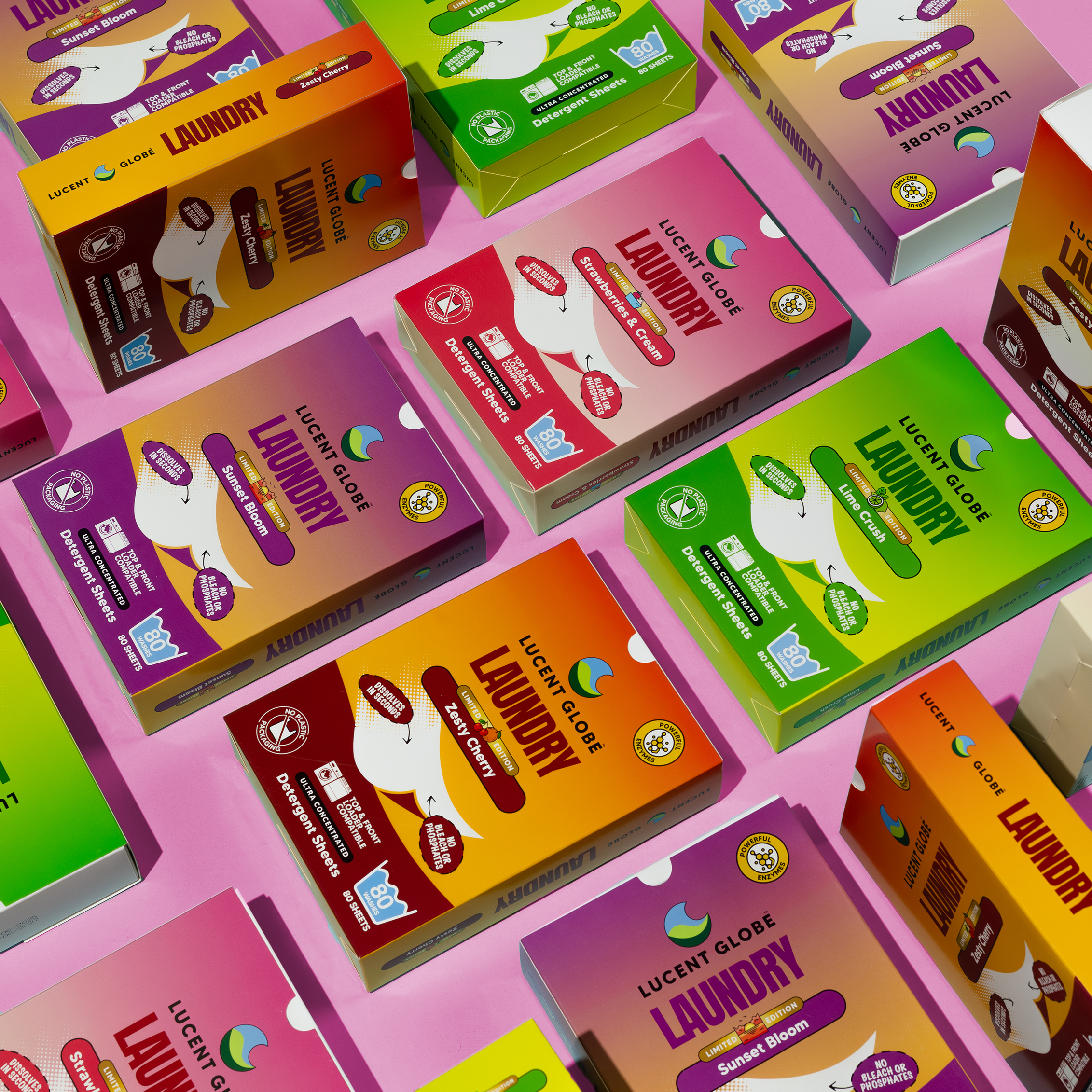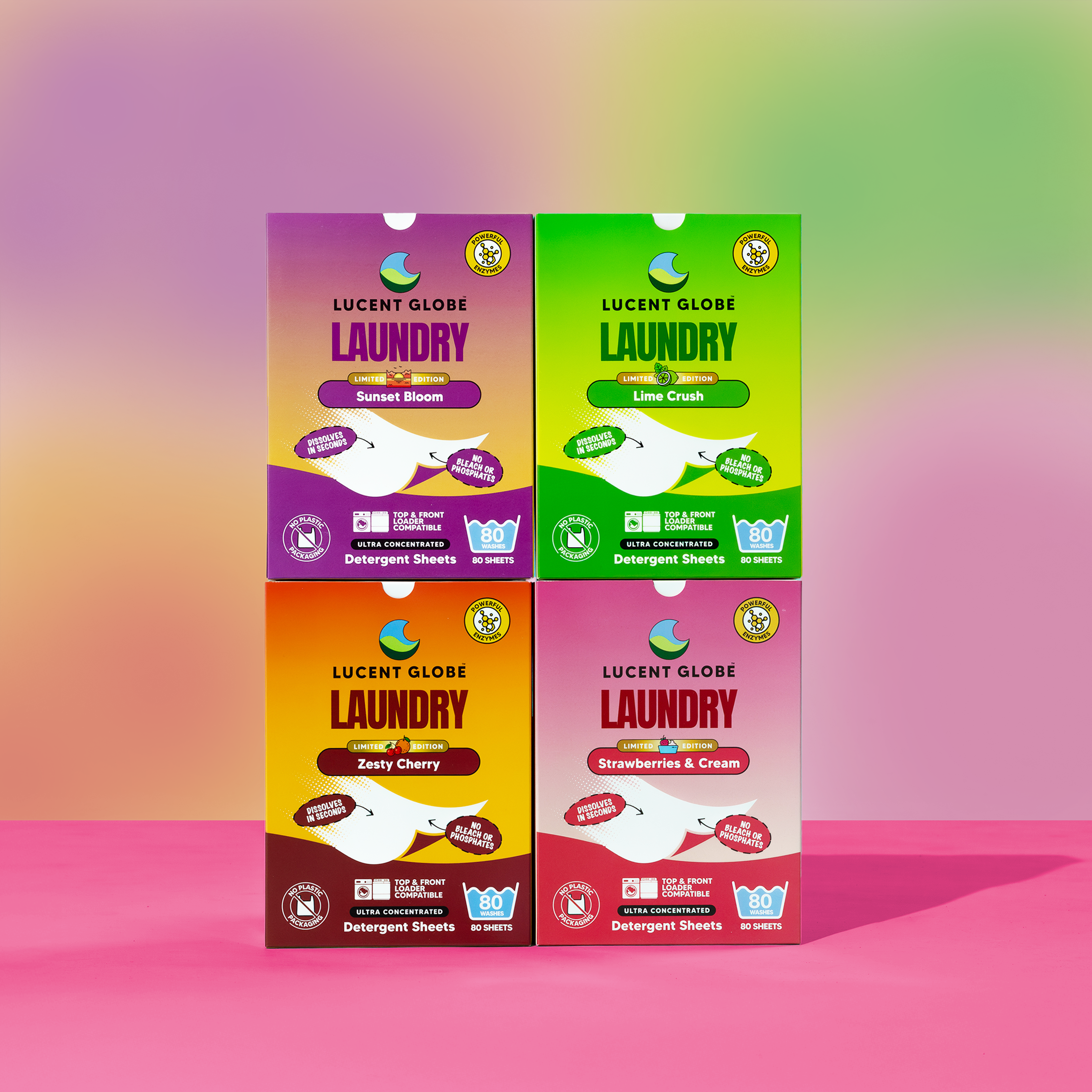 Meet our limited edition Laundry Detergent Scents – a 4-pack of bold, juicy, feel-good fragrances: Lime Crush, Strawberries & Cream, Sunset Bloom, and Zesty Cherry. Each dissolvable sheet packs a...